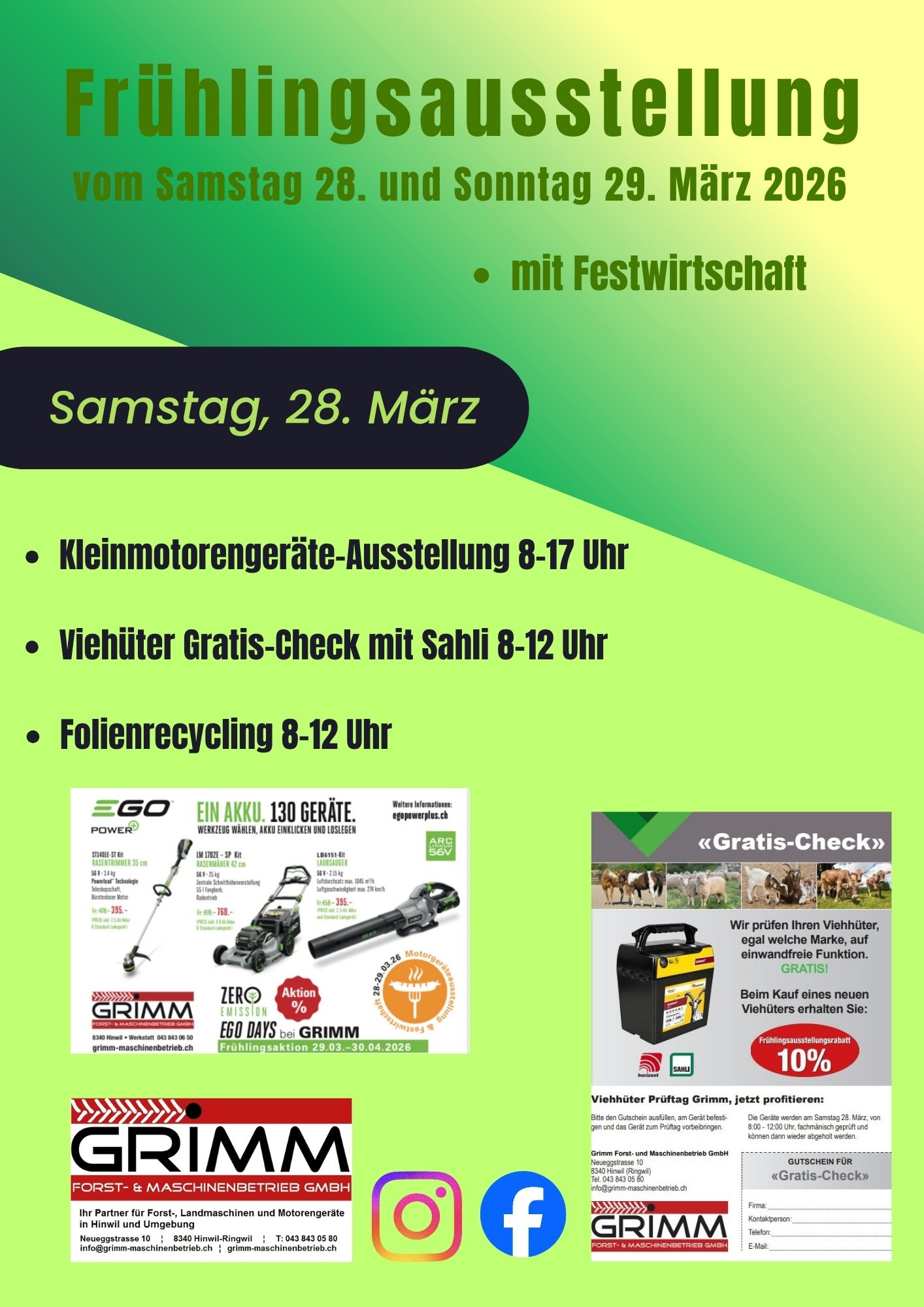 Samstag 28. März 2026 von 8 – 12 Uhr