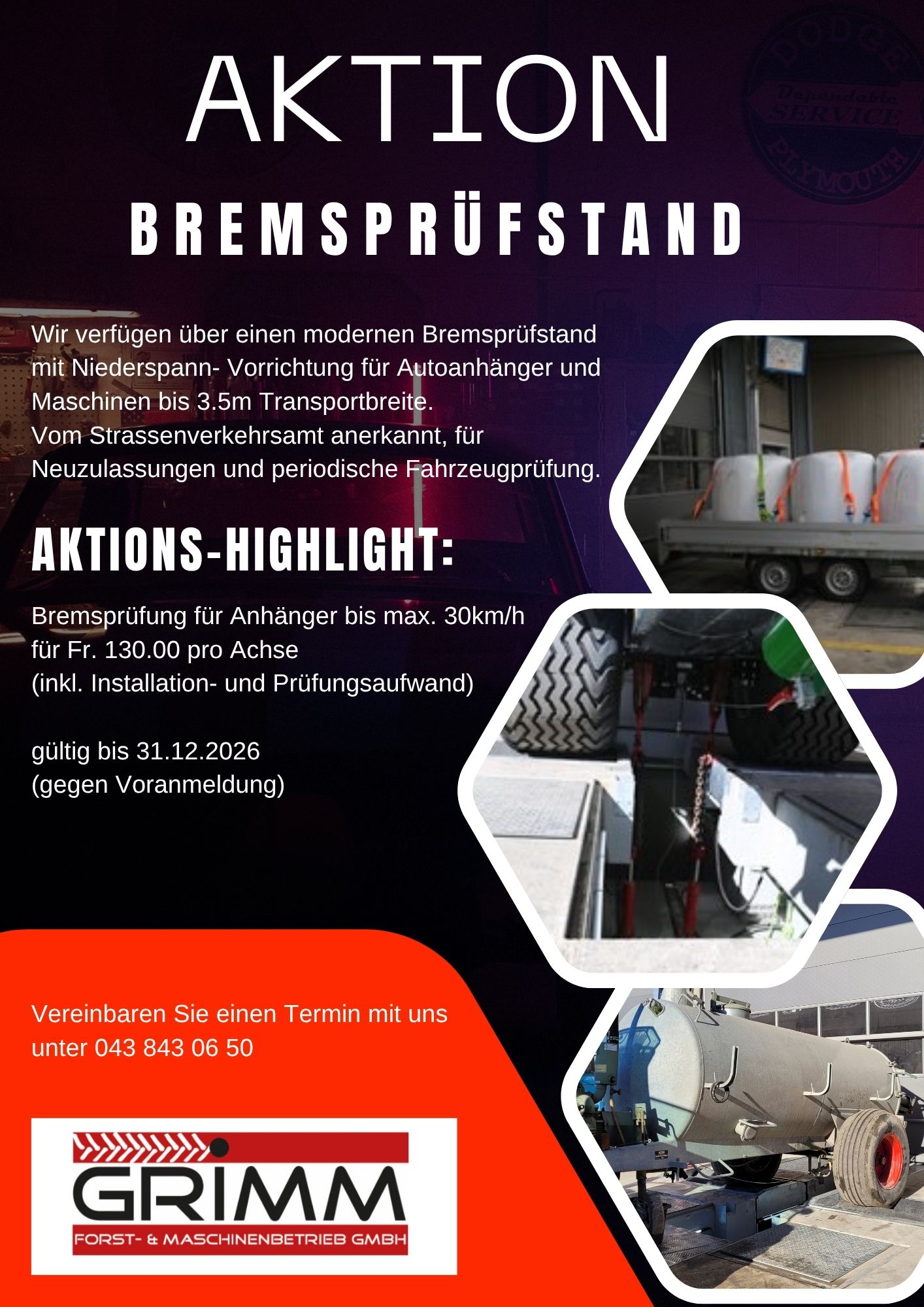 --> Der Prüfstand ist offiziell vom Strassenverkehrsamt anerkannt, Bremsprüfungen für Neuzulassungen